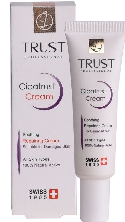 کرم ترمیم کننده تراست مناسب ترمیم پوستهای آسیبدیده و درمان انواع آسیبهای پوستی است. مواد مؤثره موجود در این کرم باعث تحریک به تکثیر سلولهای پوستی و ترمیم آسیبهای واردشده به پوست میشوند؛ این کار را نیز با افزایش انقباض عضلات اطراف ناحیه آسیبدیده، کمک به جمع شدن زخمها و بهبود سریعترشان انجام میدهند. وجود ترکیبات فعال گیاه براسیکای این محصول، از رشد باکتریها و قارچها جلوگیری کرده و از طریق اولیگوگالاکتومانان جلوی التهاب، قرمزی، خارش و سوزش پوست در ناحیه آسیبدیده را میگیرد. همچنین مصرف این کرم با داشتن ترکیبات فعال سرامیدی به آبرسانی پوست هم کمک میکند.